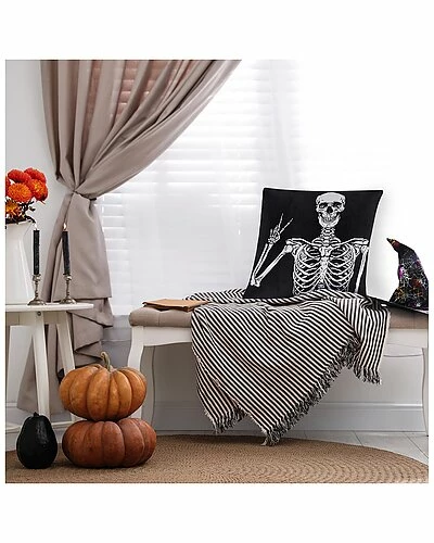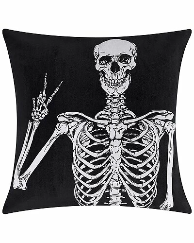 - Design details: the halloween collection by edie@home is a stylish way to make your home festive during the holidays with chic prints and designs in cozy fabric. the peace skeleton throw pillow features an adorable foil print over rich velvet. each pillow measures 18 in. x 18 in. 100% polyester. convenient zipper closure.