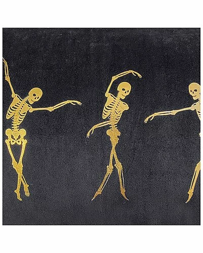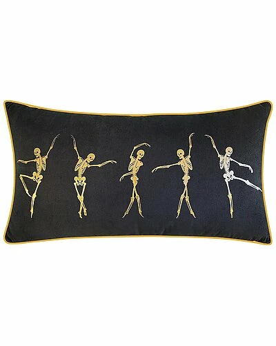 - Design details: the halloween collection by edie@home is a stylish way to make your home festive during the holidays with chic prints and designs in cozy fabric. the dancing skeleton throw pillow features a hilarious dancing skeleton ballet troupe in gold over rich black velvet. each lumbar pillow measures 14 in. x 26 in. 100% polyester. convenient zipper closure.