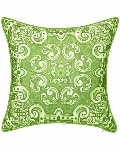 - Design details: edie@home indoor & outdoor decorative pillow collection combines modern, classic and contemporary style to create unique designs for your home. each pillow is crafted from high quality weather-resistant fabric that can be placed outdoors on your backyard patio, front porch or deck but look just as good on your living room sofa and couch, master bedroom, guest room, nursery or your favorite armchair. zipper closure and easy spot clean keep the pillows looking good as new year after year. the alhambra decorative pillow features a travel-inspired print perfect for home fashion enthusiasts. available in black, capri blue, leaf green, citron yellow and navy blue to complement any existing home decor. 100% polyester. easy spot clean. measures 20×20.
