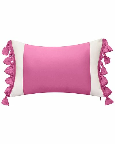 - Design details: edie@home indoor & outdoor decorative pillow collection combines modern, classic and contemporary style to create unique designs for your home. each pillow is crafted from high quality weather-resistant fabric that can be placed outdoors on your backyard patio, front porch or deck but look just as good on your living room sofa and couch, master bedroom, guest room, nursery, dorm room or your favorite armchair. zipper closure and easy spot clean keep the pillows looking good as new year after year. the colorblock tassel fringe decorative pillow features a stylish design with colorblocking and beautiful decorative accents. available in black, leaf green, fuchsia pink and aqua blue to complement any existing decor. 100% polyester. easy spot clean. measures 12×20.