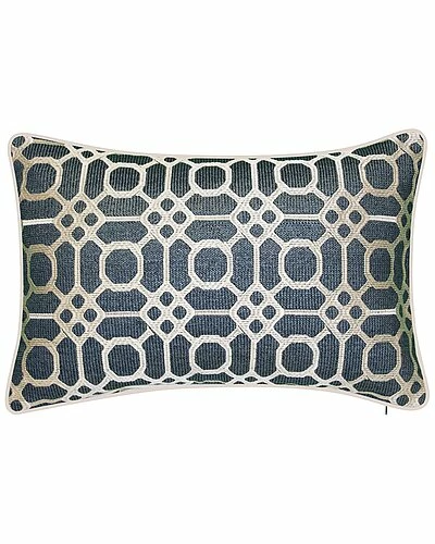 - Design details: edie@home indoor & outdoor decorative pillow collection combines modern, classic and contemporary style to create unique designs for your home. each pillow is crafted from high quality weather-resistant fabric that can be placed outdoors on your backyard patio, front porch or deck but look just as good on your living room sofa and couch, master bedroom, guest room, nursery or your favorite armchair. zipper closure and easy spot clean keep the pillows looking good as new year after year. the raffia embroidered geometric decorative lumbar pillow uses raffia to showcase a rustic yet elegant design perfect for home fashion enthusiasts. available in white/navy, black/natural and capri/natural to complement any existing home decor. 100% polyester. easy spot clean. measures 13×21.