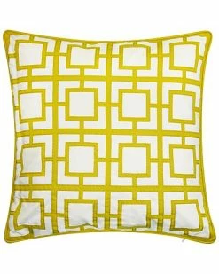 - Design details: the edie@home outdoor pillow collection combines fresh, stylish designs and high-quality fabrics made to withstand the elements of the outdoors. the modern links applique indoor & outdoor decorative pillow features a fresh take on a traditional geometric pattern. perfect for indoors or outdoors, durable and colorfast polyester applique and embroidery is made to last year after year. a variety of bright color options over a white ground add a pop of color and can be mixed and matched. each plush throw pillow measures 20″ x 20″. available in citron, black, aqua and leaf. convenient zipper closure. easy spot clean. 100% polyester. can be used indoors or outdoors.