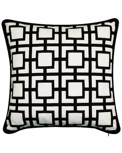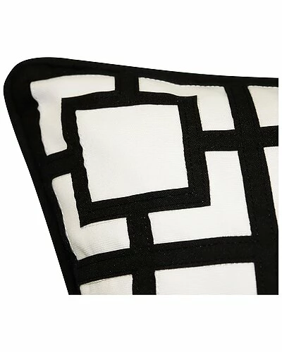 - Design details: the edie@home outdoor pillow collection combines fresh, stylish designs and high-quality fabrics made to withstand the elements of the outdoors. the modern links applique indoor & outdoor decorative pillow features a fresh take on a traditional geometric pattern. perfect for indoors or outdoors, durable and colorfast polyester applique and embroidery is made to last year after year. a variety of bright color options over a white ground add a pop of color and can be mixed and matched. each plush throw pillow measures 20″ x 20″. available in citron, black, aqua and leaf. convenient zipper closure. easy spot clean. 100% polyester. can be used indoors or outdoors.