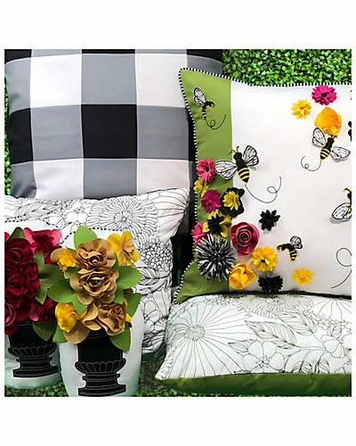 - The Outdoor Pillow Collection combines fresh, stylish designs and high-quality fabrics made to withstand the elements of the outdoors. The Outdoor Dimensional Potted Topiary Door Stopper will effortlessly spruce up your decor with a bright floral print and dimensional detailing. Outdoor decorative doorstop measures 7″ x 11″. Each fabric door stopper is filled with sand to provide enough weight to easily prop open most doors. Available in yellow gold, lobster red and leaf green. Easy spot clean. Cover: 100% Polyester; Fill: 100% Sand. Can be used indoors or outdoors.