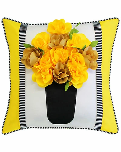 - The Outdoor Pillow Collection combines fresh, stylish designs and high-quality fabrics made to withstand the elements of the outdoors. The Dimensional Outdoor Striped Floral Roses Decorative Pillow will bring the garden right into your home with bright yellow dimensional roses, applique and chic black stripes. Plush outdoor decorative pillow measures 18″ x 18″ and features piped edging. Convenient zipper closure. Easy spot clean. 100% Polyester. Can be used indoors or outdoors.