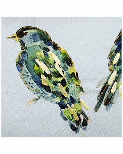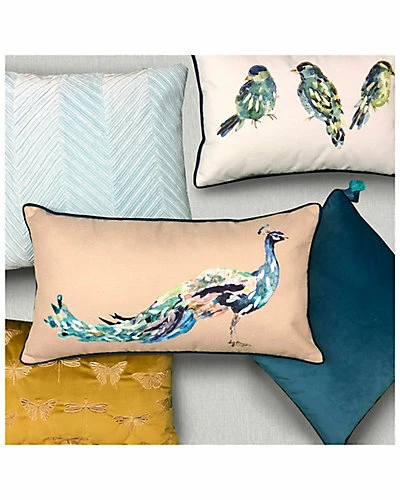 - Collections combine timeless style with modern artisanal details to create fresh eye-catching decor for your home. Add a unique pop of color to your decor with The Reversible Ribbon Blue Birds Decorative Lumbar Pillow. Each plush feather-filled accent pillow measures 14 in. x 21 in. and features textured faux linen with chic ribbon embroidery throughout a bold blue bird design and matching piped edges. Each throw pillow has a zippered closure. Easy spot clean. 100% Polyester shell and 100% feather fill.